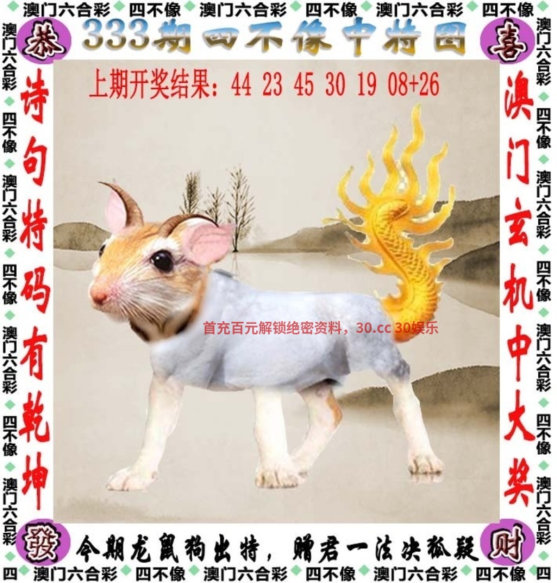 333期:六肖〖猴鸡鼠兔牛羊〗开:鼠06准